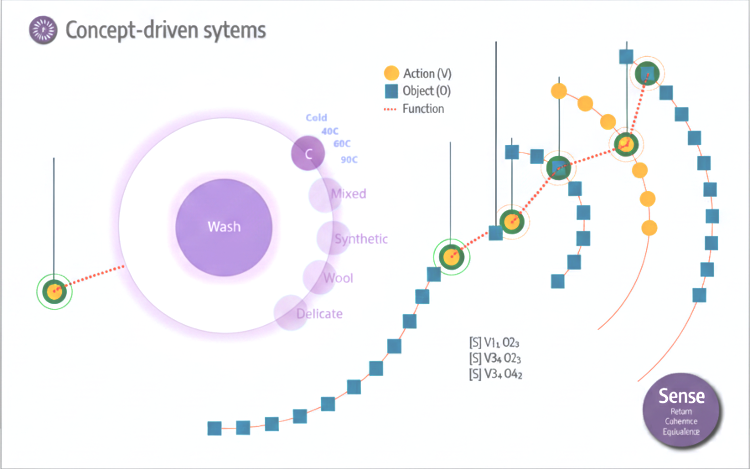 I am developing the idea of concept-driven systems—a new architectural framework for artificial intelligence and general design strategy grounded in how humans actually form concepts and express intentions. Unlike today’s language models that learn from text patterns or earlier attempts at manual knowledge engineering, this approach creates systems that inherently understand causality, temporality, and the consequences.
